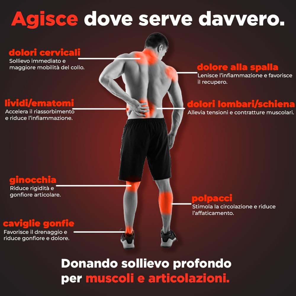 Stretching, ghiaccio, massaggi… ma il dolore ritorna. Serve qualcosa che agisca più in profondità, dove nasce la tensione. Con il Gel Arnica Extra Hot 98%, hai una formula intensa che lavora in profondità su muscoli e articolazioni per rimetterti in movimento.